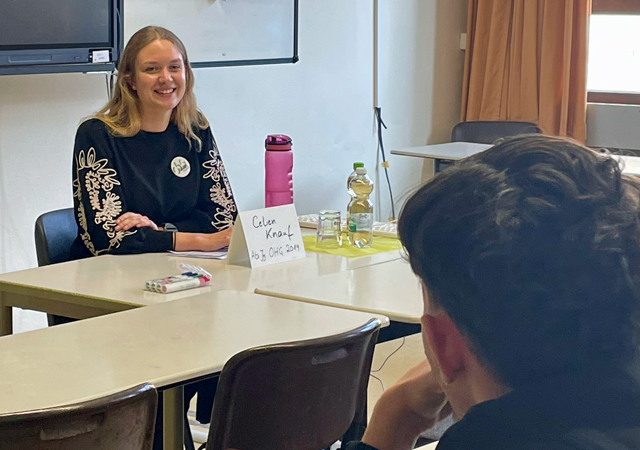 In diesem Jahr hatten sich neun Ehemalige am 22.01.2026 eingefunden, um aus ihrer Berufsbiografie zu berichten und den Schülerinnen und Schülern Rede und Antwort zu stehen: Andrea Baumert (Abi-Jahrgang 1988), Maurits Christensen (2018), Kerstin Falkuss (2003), Martin Groffmann (1984), Celien Knauf (2019), Robin Krüger (2012), Dennis Schmidt (2001), Ursula Seipold (1989) und Simone Weitemeier (2002). Es waren dabei so unterschiedliche Berufe vertreten wie Steuerberater, Ergotherapeutin, Tierärztin, Tanzlehrerin, Forstwirt oder Wirtschaftsingenieur.