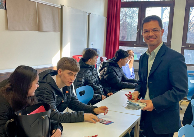 Nach einer kurzen Vorstellungsrunde jeweils im Klassenverband konnten kleinere Schülergruppen mit den Ehemaligen ins Gespräch kommen, um herauszufinden, auf welchem Weg und mit welchen Motivationen und zuweilen auch Zufällen sie zu ihrer aktuellen Tätigkeit gefunden haben. Dabei ergaben sich viele Nachfragen, so dass die Zeit manches Mal knapp wurde.